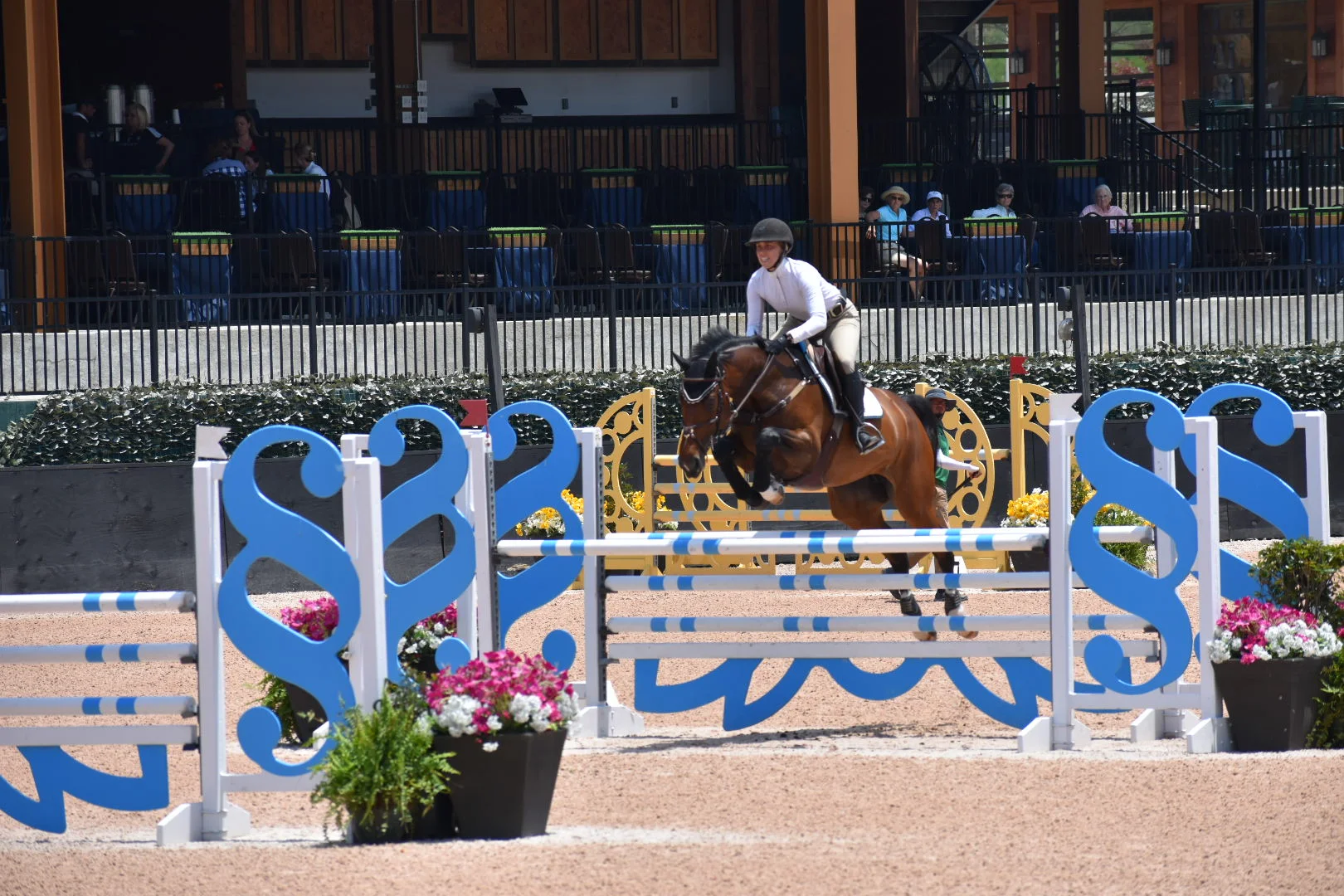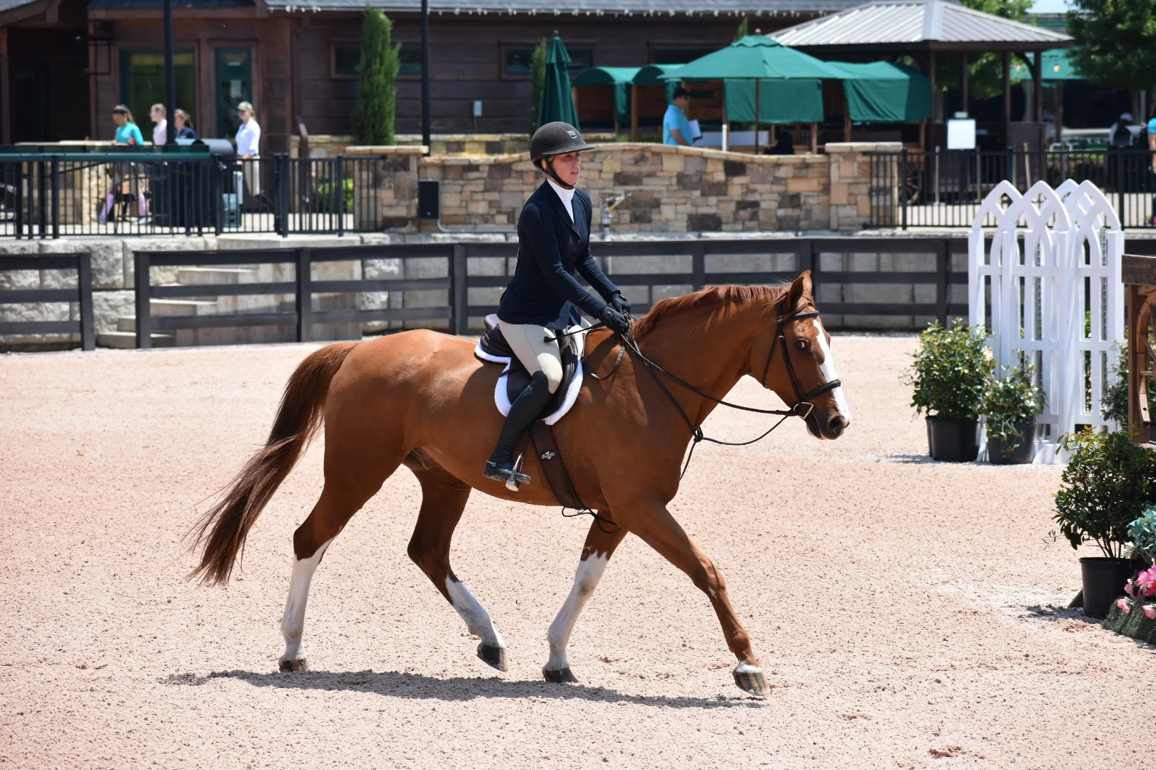 Proper attire of riding boots, long pants and a certified horseback riding helmet are required for lessons.